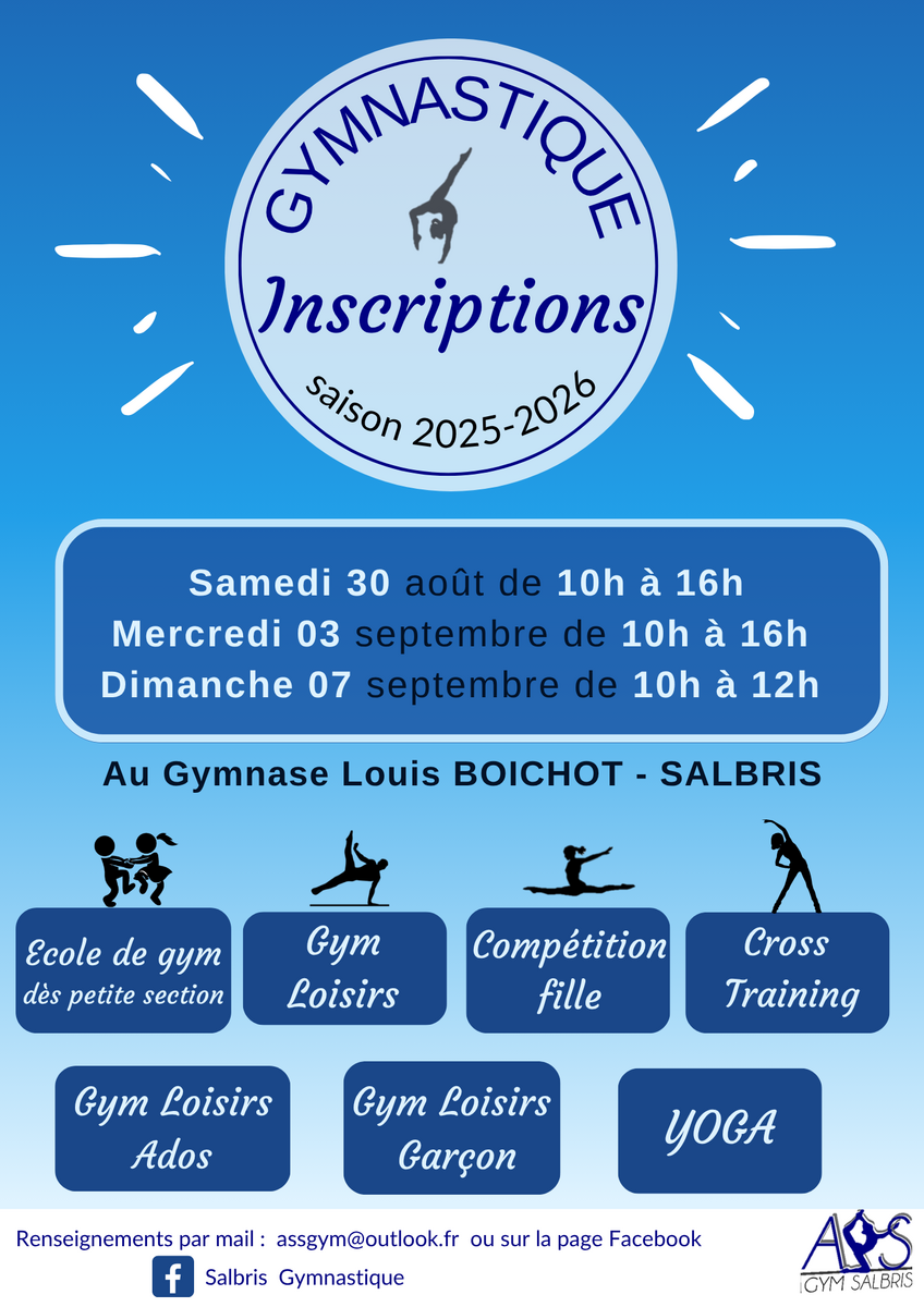 Journée d'inscription pour les groupes Compétition, Loisirs, Ecole de gym, Yoga & Crosstraining.